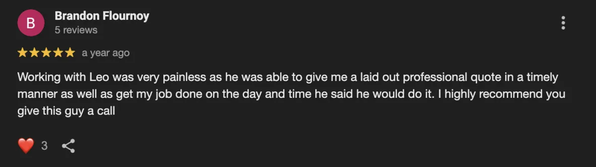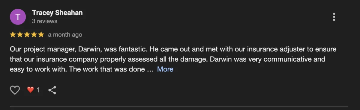 "The guys came out, they were great. Cleaned up everything and was done in a day."