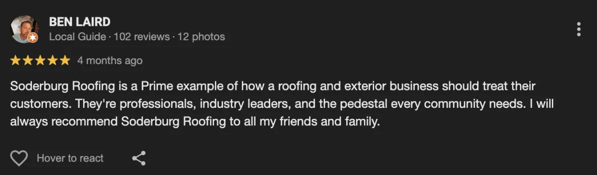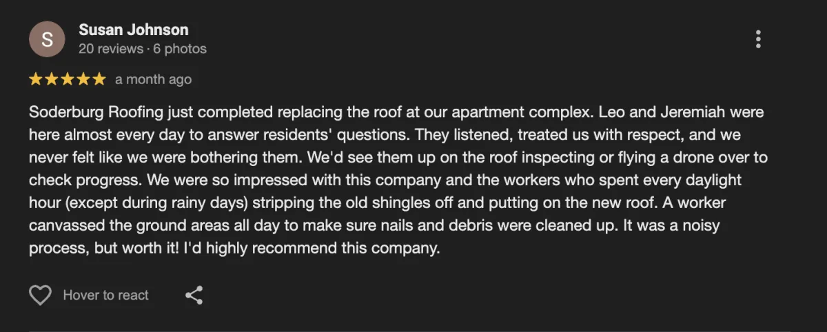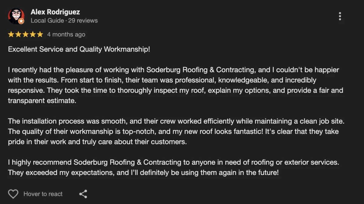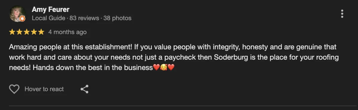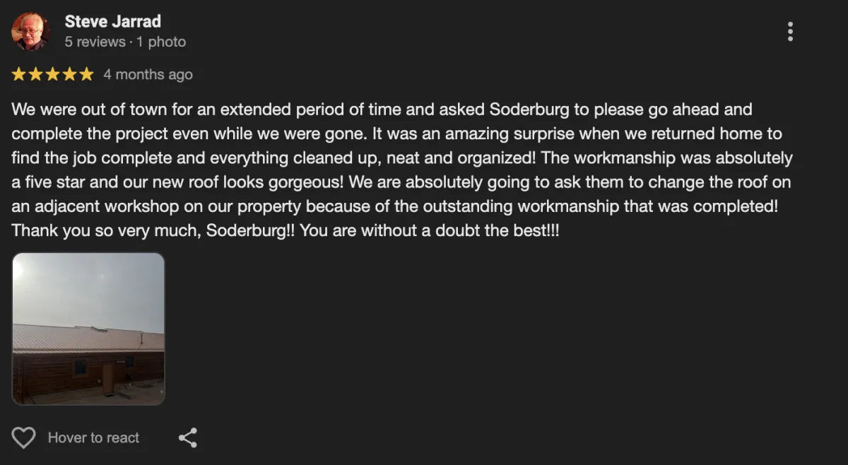 "Our whole experience with Soderburg was fantastic. The explained every single detail."